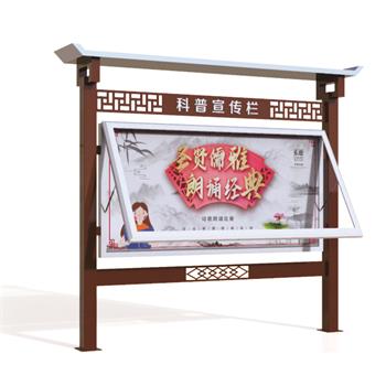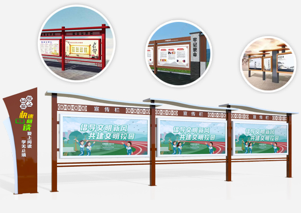 生活中的宣传栏:是我们生活文化的重要组成部分,可以通过张贴海报、报纸等方式向人们传递信息,是生活文化中不可缺少的元素之一,宣传栏也是一种VI应用,是组织或企业单位等进行自我宣传的有效手段,常被应用于街道,厂,酒店等公共场所;一般采用不锈钢为框架,钢化玻璃或者耐力板为面板,铝合金为顶棚,面板可以打开更换宣传画面。